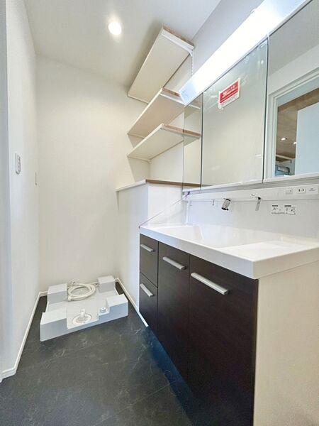見た目の美しさだけではなく、機能性も追求した使い勝手の良い鏡裏収納付3面鏡型の独立洗面化粧台。広めで使いやすい、お手入れが楽なデザインのカウンターに収納豊富なキャビネットとでいつも清潔に保てます。