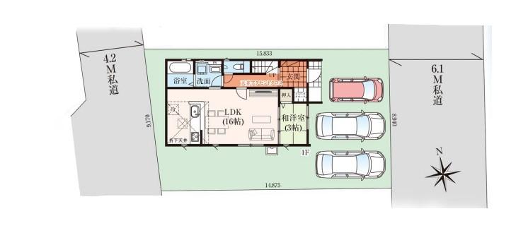 ※土地(建築条件なし)で「建物プラン例」が表記してある時、そのプラン例は特定の建築請負会社によるもので、当該建築請負会社以外で建てた場合、同様のものが同価格で建てられるとは限りません。また建築請負会社を特定するものではありません。