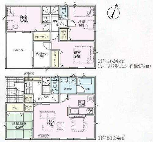 | 設備 | 収納スペース・追焚機能・都市ガス・浴室乾燥機・シャンプードレッサー・ウォシュレット・システムキッチン・カウンターキッチン・モニタ付インターホン・庭・クロゼット・トイレ2ヶ所・床下収納・浄水器・カードキー・複層ガラス・ディンプルキー・電気・上水道・浄化槽 | ||||