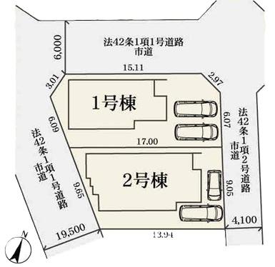 地目 | 宅地 | 道路付け | 道路幅:4.1m~19.5m、アスファルト舗装、西側19.5m 公道、北側6m 公道、東側4.1m 公道 | ||