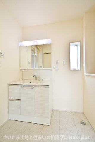 三面鏡付き洗面台は朝の寝癖直しも楽々。鏡裏には歯ブラシセットやスキンケアも収納できて魅力的です!下の収納にもドライヤーや入浴グッツ、洗剤のストックなど…様々なものが収納できる便利な設備です!