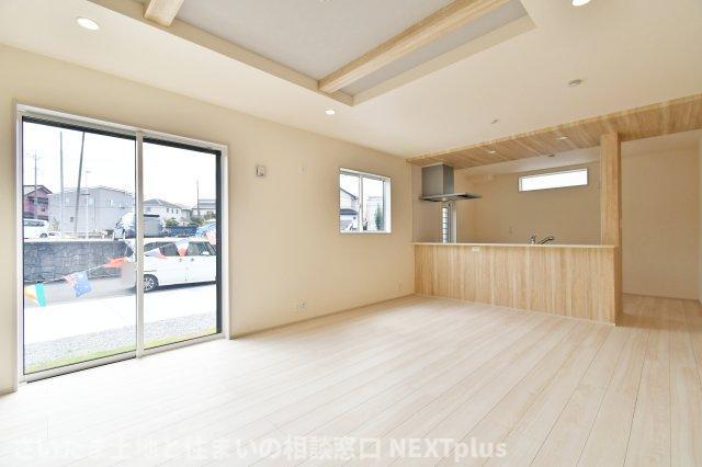 LDK17帖:広いリビングスペースで、ソファや家具を置いても余裕のある空間です。ご家族・お友達が集まっても全員がゆったり楽しめるリビングスペースなので、ホームパーティーを開いても楽しそうですね◎