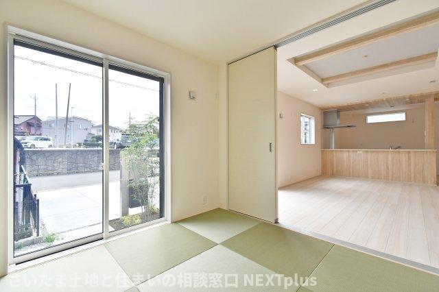 和室4.5帖:琉球畳がモダンで美しい和室です!ご家族、ゲストの寝室の他、リビング続き間でキッチンからも見えますので、お子様の遊び場、お昼寝スペースにも重宝します◎リビングの一部としても◎