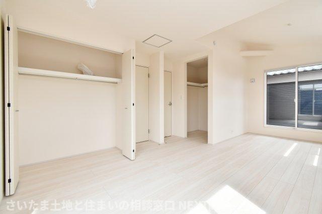 洋室①10.2帖:窓が多く風通しが良いので、換気もしやすい洋室です。ウォークインクローゼットは大容量なので他に収納家具を置く必要が無く、空間を有効的に使えます◎勾配天井が開放感をプラスしています!
