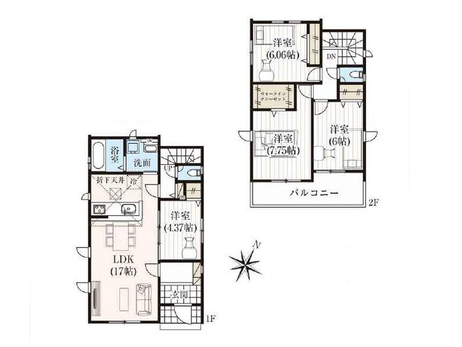 ※土地(建築条件なし)で「建物プラン例」が表記してある時、そのプラン例は特定の建築請負会社によるもので、当該建築請負会社以外で建てた場合、同様のものが同価格で建てられるとは限りません。また建築請負会社を特定するものではありません。