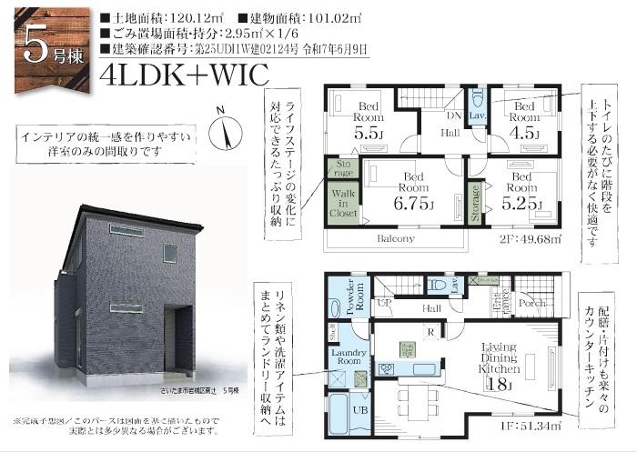 | 建物面積 | 94.39㎡~103.5㎡(28.55坪~31.30坪) | 土地面積 | 120.12㎡~170.05㎡(36.33坪~51.43坪) | ||