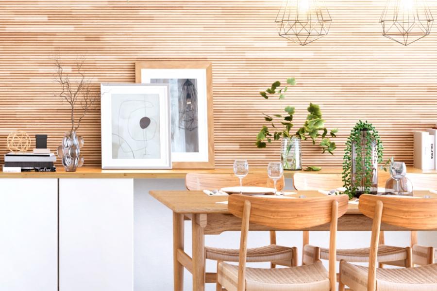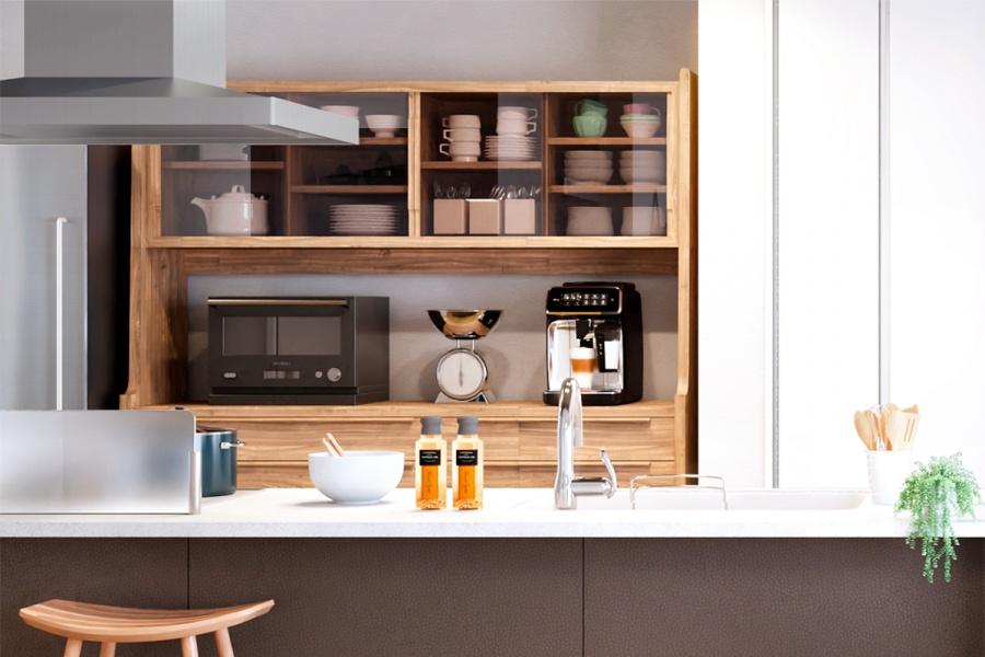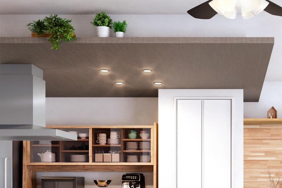 【デコマド】リビングと隣接する洗面所は、カフェ風のデコマドを設置。風の通り道をつくり、陽光も注ぐ明るい空間に。家族の気配を感じながら心地よい空間で身支度ができます。※号棟により採用状況が異なります。
