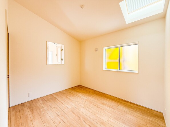 1号棟【洋室5.25帖】昨今のトレンドになりつつあるのが、広過ぎず、快適すぎない子ども部屋。勉強と寝るだけの部屋にすることで閉じこもりがなくなり、リビングで過ごす時間が増えると言われています。