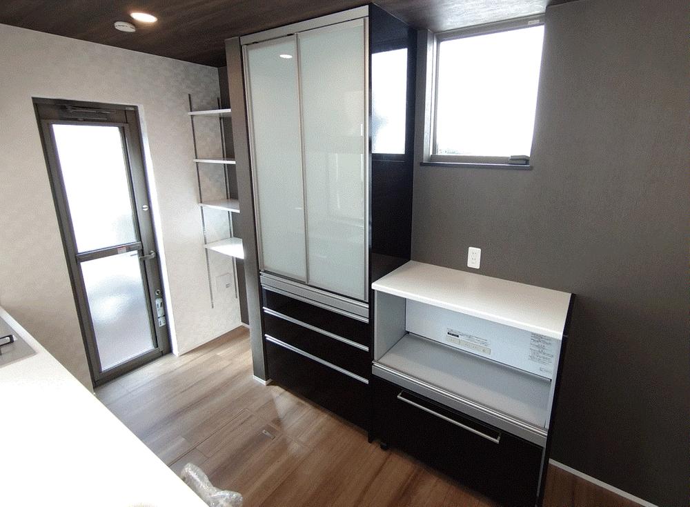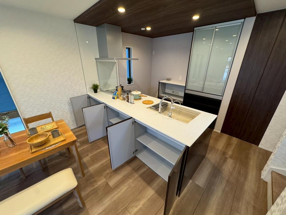 キッチンもカップボードもインテリアの一部家電も、ストックも、統一感のある周辺収納が、居心地のいい空間をつくります収納物が見やすいワイドな間口、出し入れのしやすいキッチンワーク収納物を整理しやすいシンプルな使い勝手の棚カウンター下には炊飯器や電気ケトルが収まるキャビネットスライド式で引き出して使えます