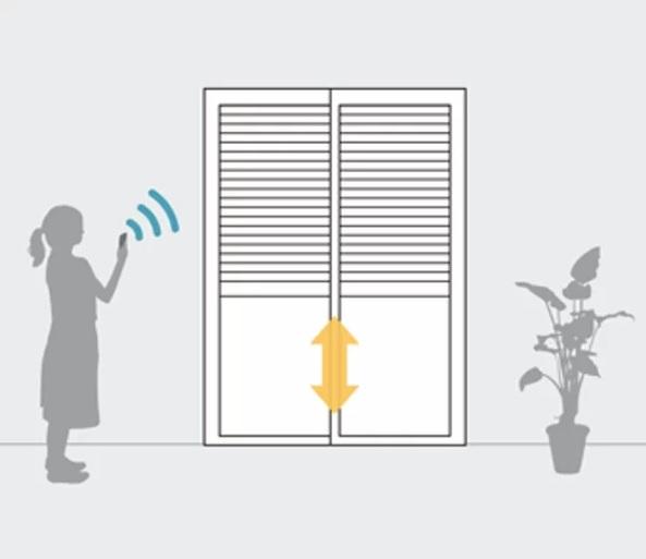 シャッターをスマートにして、家族の暮らしをより進化電動シャッターなら、家事をしながら、テレビを見ながらでもリモコンで開閉が可能開閉時の雨風や花粉、虫などの侵入も、電動シャッターなら安心です障害物に当たると停止・反転する安全機能も搭載しています