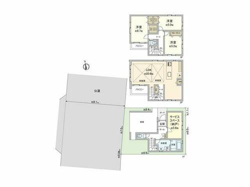 私道負担・道路 | - | 道路付け | 東 9.1m 公道 接面7.1m | ||