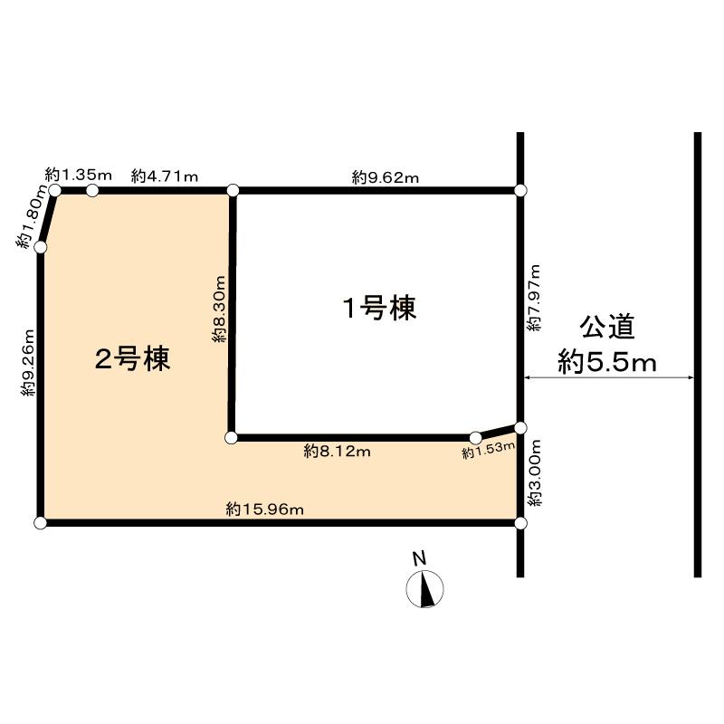 | 建物面積 | 86.94㎡(26.29坪) | 土地面積 | 96.08㎡(29.06坪)(実測)、路地状部分:25㎡含 | ||