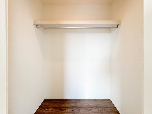 【WIC(ウォークインクローゼット)】 たくさんの洋服をかけてもシワになりにくいウォークインクローゼット。洋服以外にも、普段使わない家電やスーツケース、ストック品など何でも片付く嬉しい空間です。