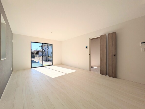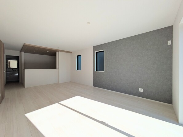 【リビング】 整然とした空間演出、快適な理想の暮らしの実現は家のみの拘りではなく、そこで暮らす方々にとって素敵な環境であることも挙げられると思います。四季折々の変化が奏でる鼓動を楽しんで下さい。