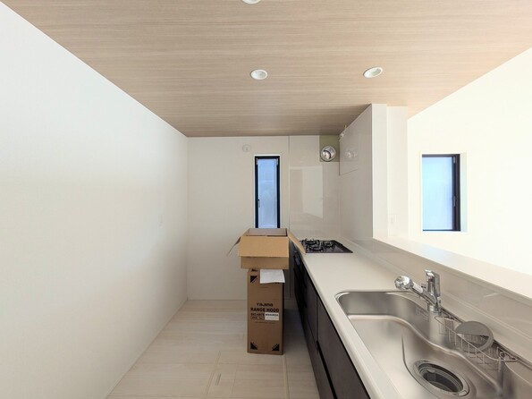 【キッチン】ナチュラルな自然光の中での調理。会話が弾む対面型キッチン。お洒落な食器類を余裕で収納できるスペース。動きやすい女性目線のキッチン動線。これからはお料理をつくる時間が劇的に変わります。