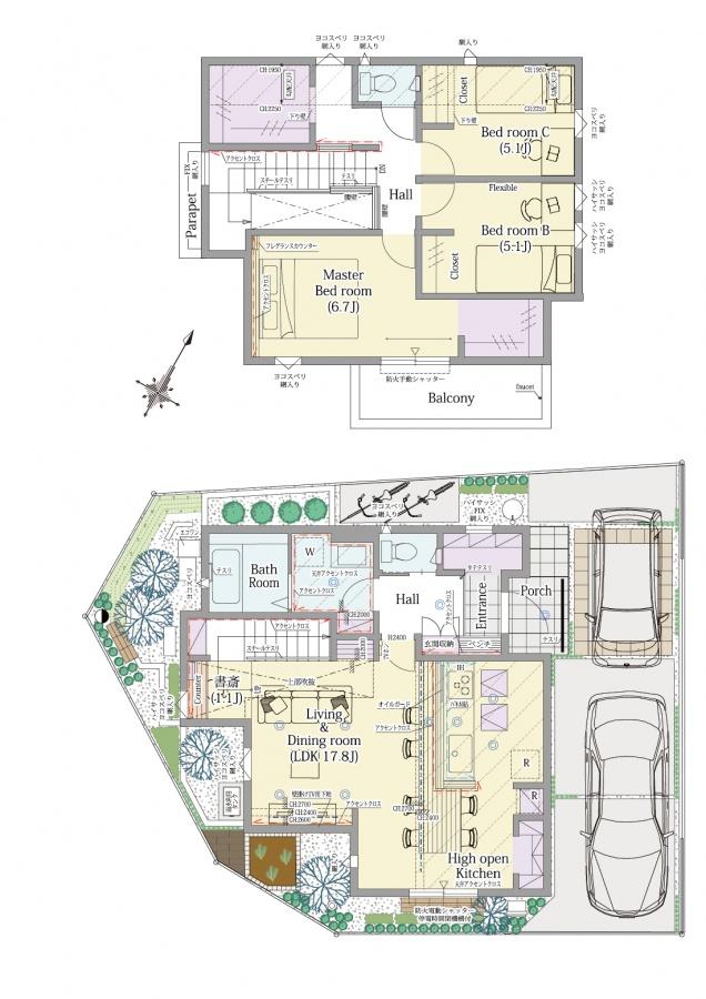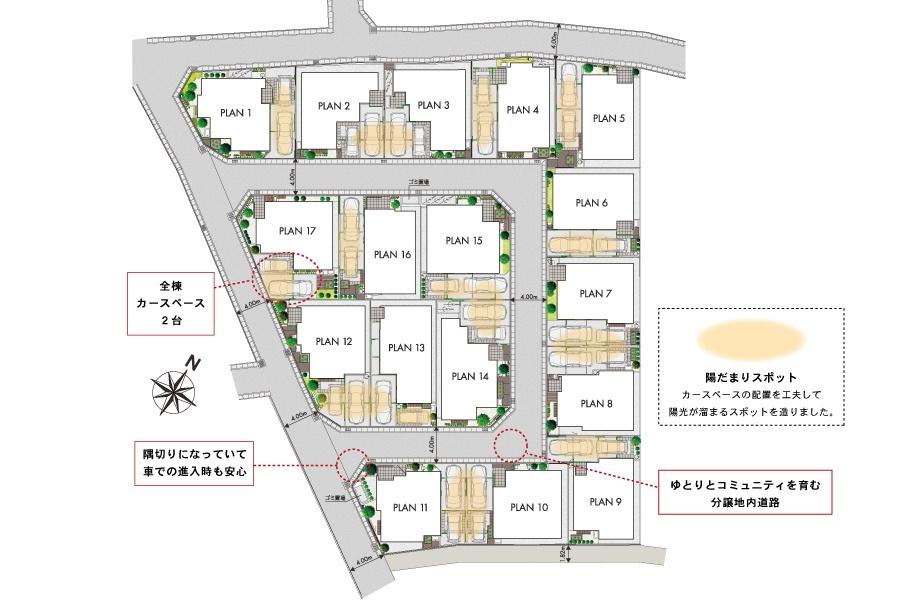 ※建築条件土地の情報内に掲載されている、建物プラン例は、土地購入者の設計プランの参考の一例であって、プランの採用可否は任意です。