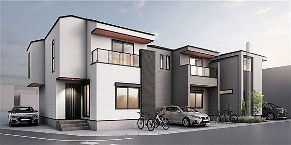 LDKは広々とした18畳以上。南西道路に面した2階建ての新築分譲住宅です。