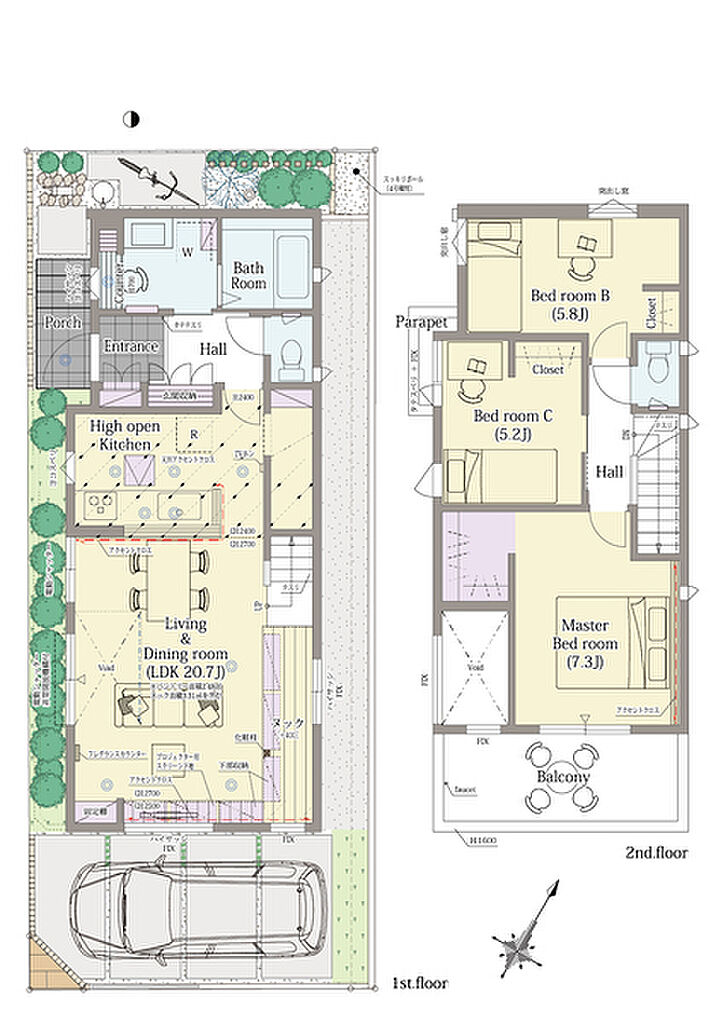 | 設備 | 公営水道、東京電力・他、都市ガス、本下水、カースペース、外構、植栽その他付帯設備一式 | ||||