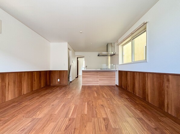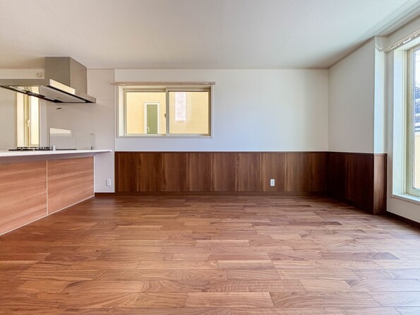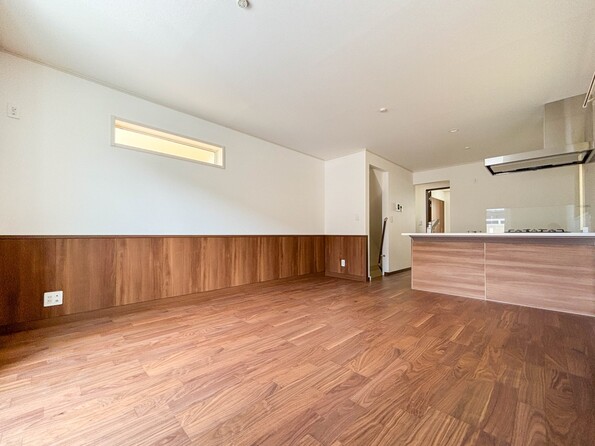 3号棟【LDK14.5帖】 リビングにいるお子様と会話をしながら家事ができるカウンターキッチン。いま手があいているか、忙しそうなのか相手の様子を伺いながらコミュニケーションをとる訓練にもなります。