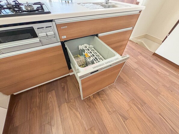 | 設備 | 水道:公営、ガス:都市ガス、排水:下水、バス・トイレ別、シャワー、コンロ口数:3、システムキッチン、追焚機能、シャワー付洗面化粧台、床下収納、洗濯機置き場:室内、バルコニー、フローリング、宅配ボックス、バルコニー、TVモニタ付インターホン、温水洗浄便座、カウンターキッチン、浴室乾燥機、食器洗い乾燥機 | ||||