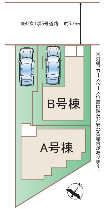 | 地目 | 宅地 | 道路付け | 道路幅:5m、アスファルト舗装、北側私道(法42条1項5号) | ||