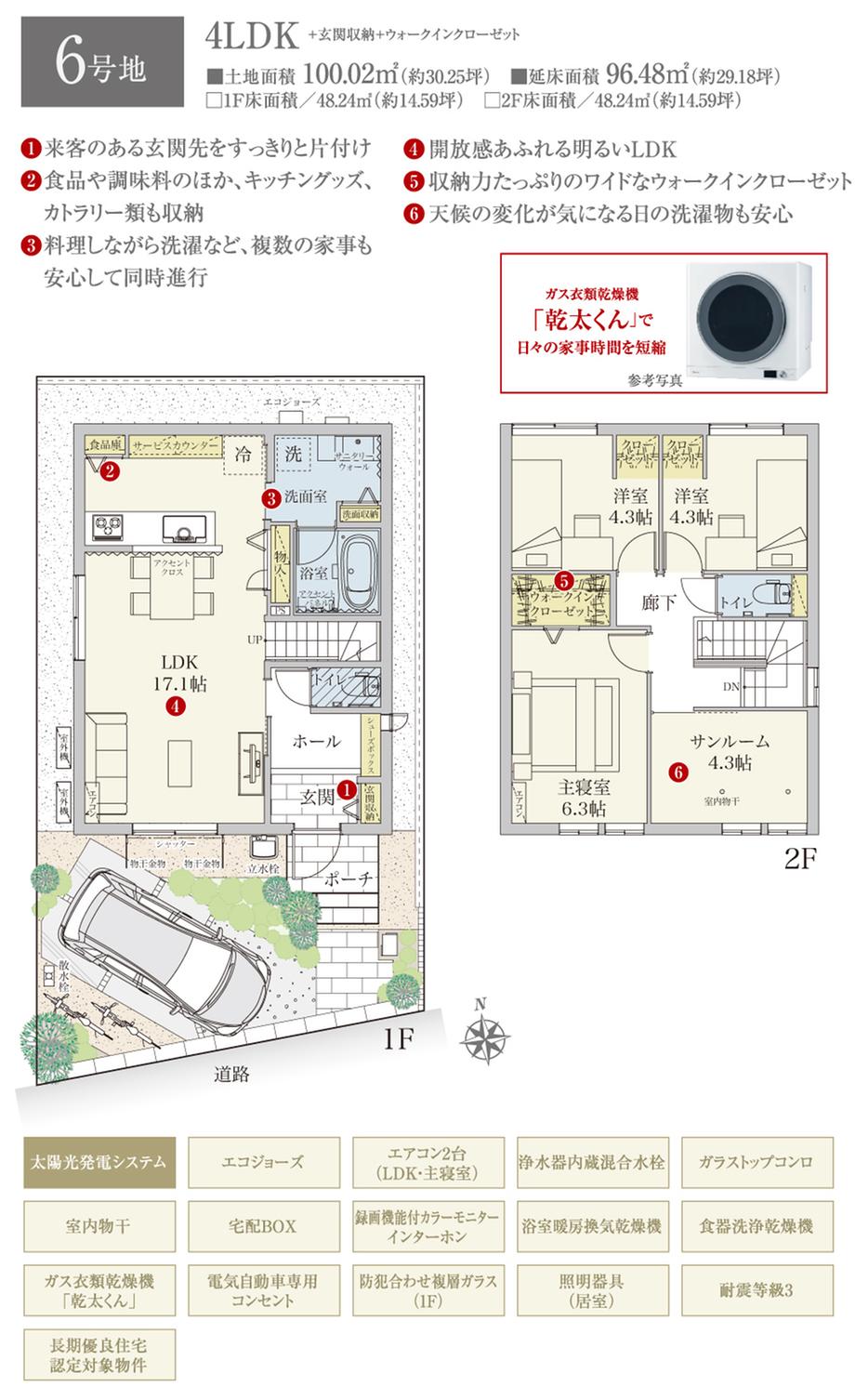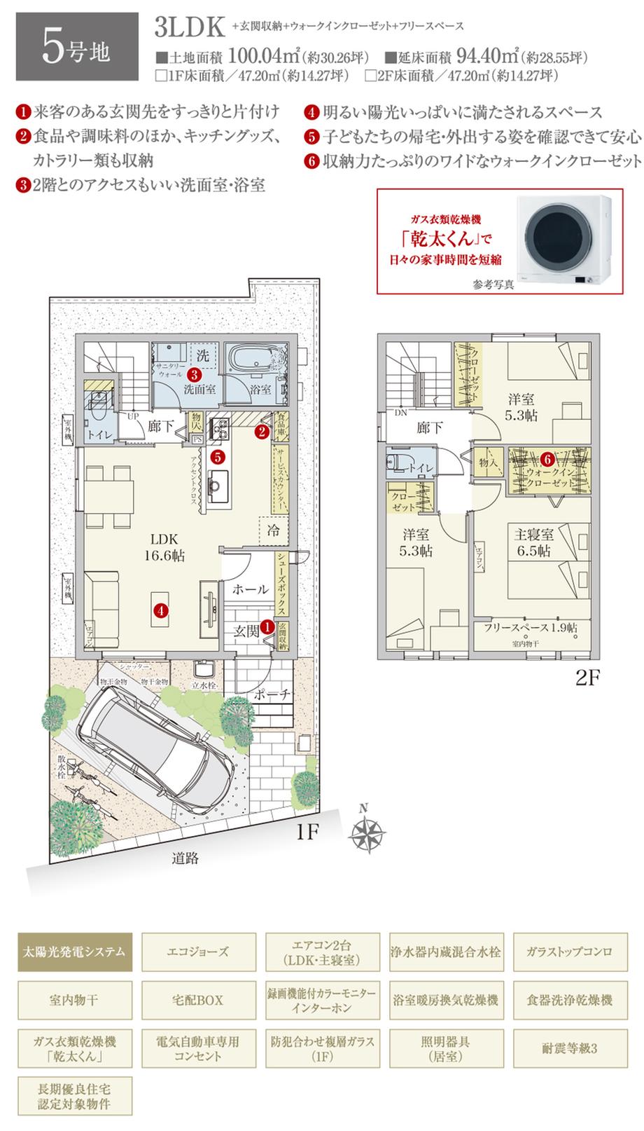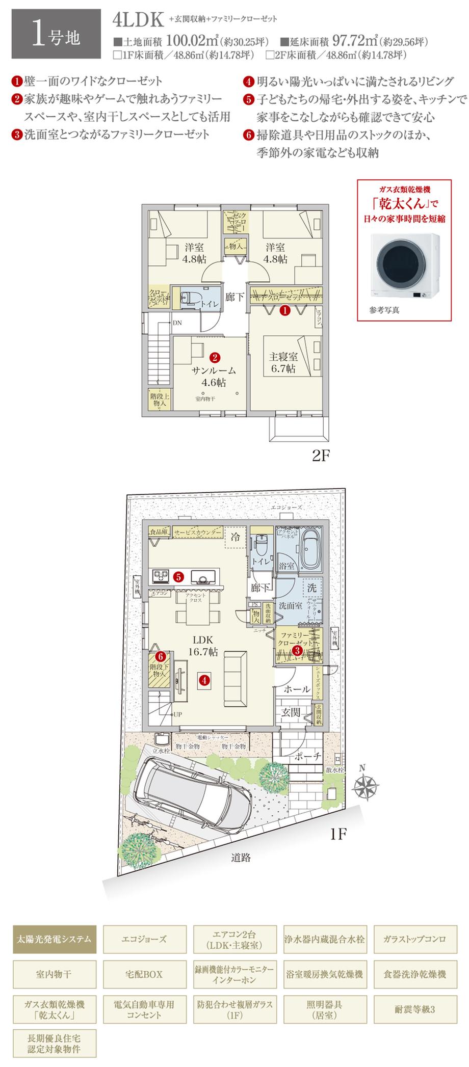 建物面積 | 94.4㎡~97.72㎡ | 土地面積 | 100.02㎡~100.04㎡ | ||