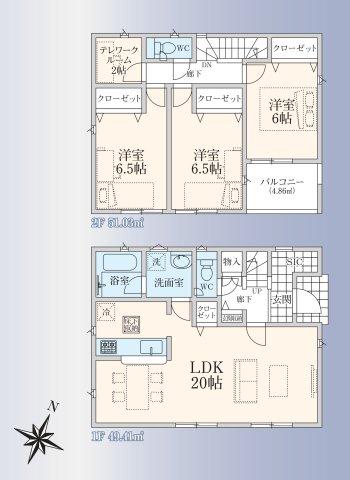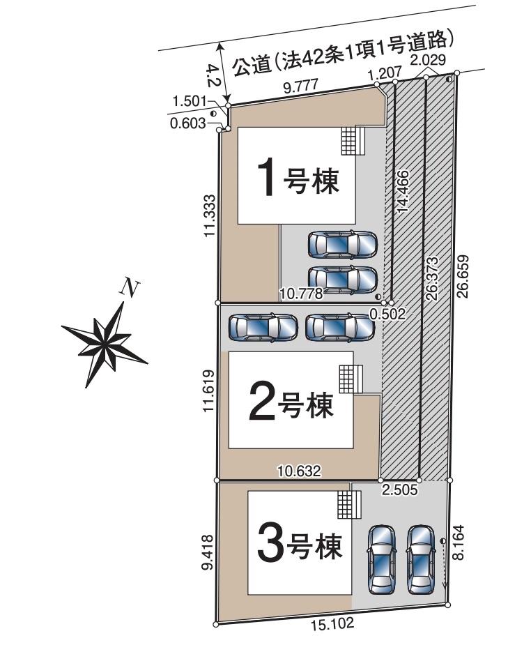 | 建物面積 | 94.76㎡~100.44㎡(登記) | 土地面積 | 154.23㎡~182.75㎡(実測) | ||