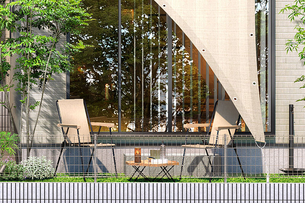 リビングから行き来できるプライベートガーデンが、暮らしに癒しを与えます。椅子とテーブルをセットしてお庭カフェも愉しめます。※号棟により採用状況が異なります。