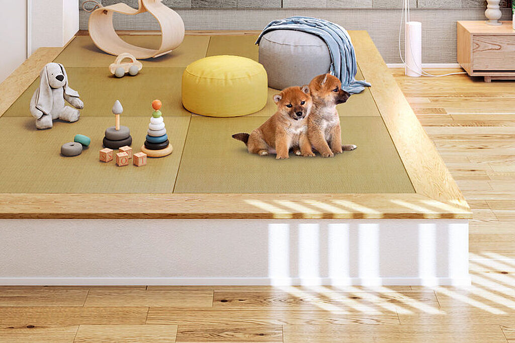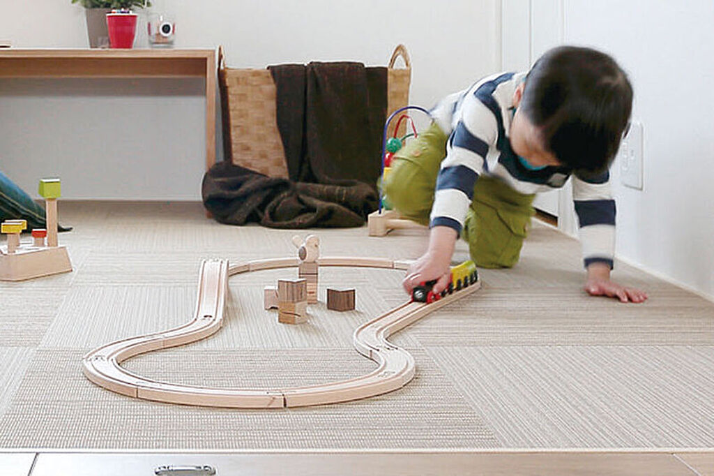 リビングに隣接する場所に、子どもが安心して遊べるようテキスタイルを敷いたフラットな空間を設けました。趣味や家事ワークなど多彩に活用できます。※号棟により採用状況が異なります。