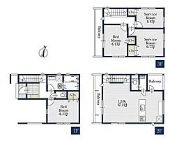 詳細を見る間取り3SLDK(S=5.1帖サービスルーム。4LDK対応可)