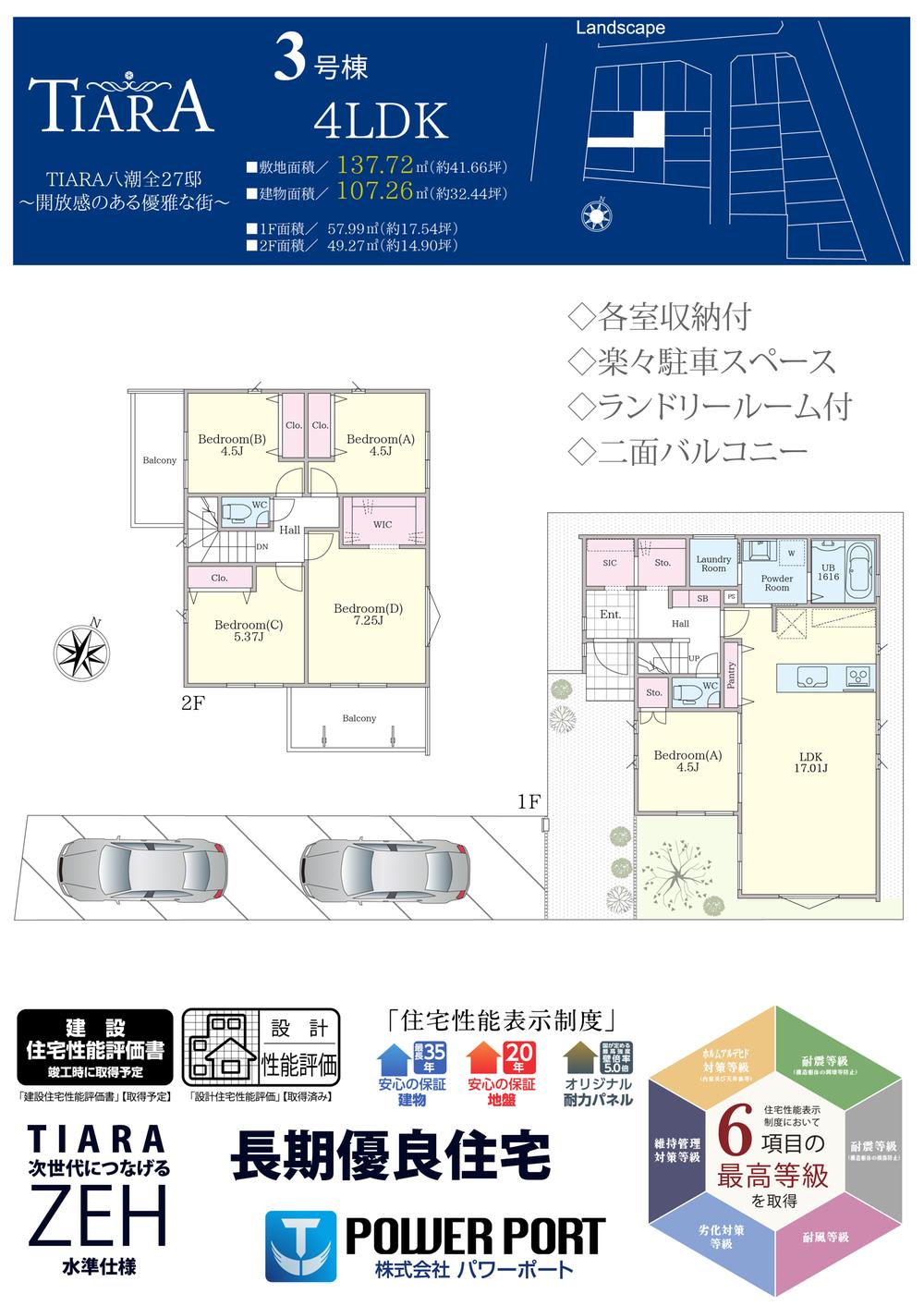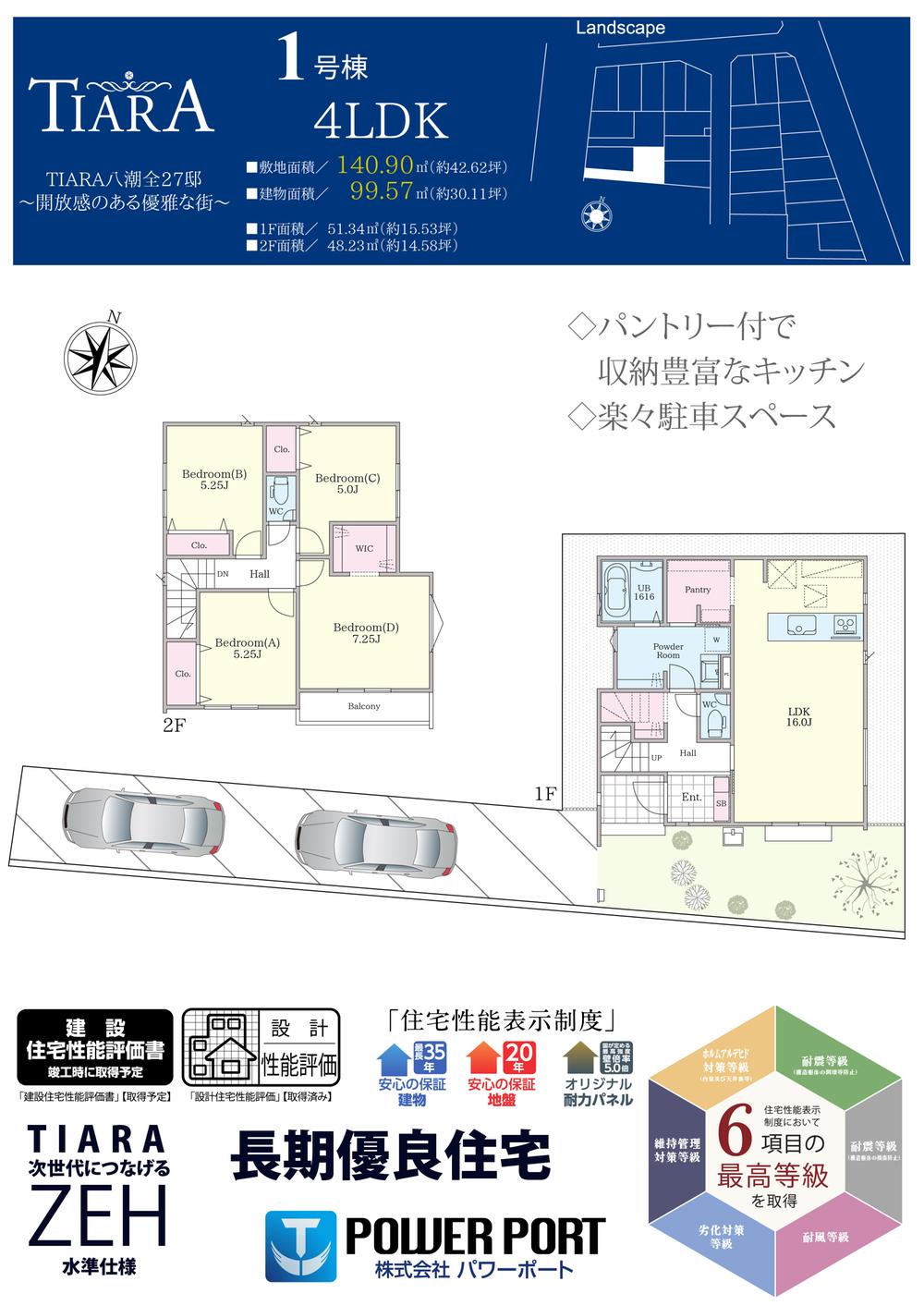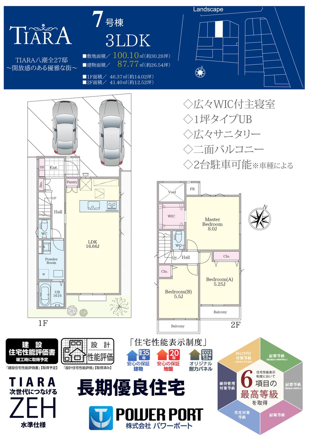 | 建物面積 | 87.77㎡~107.26㎡ | 土地面積 | 100.1㎡~140.9㎡ | ||