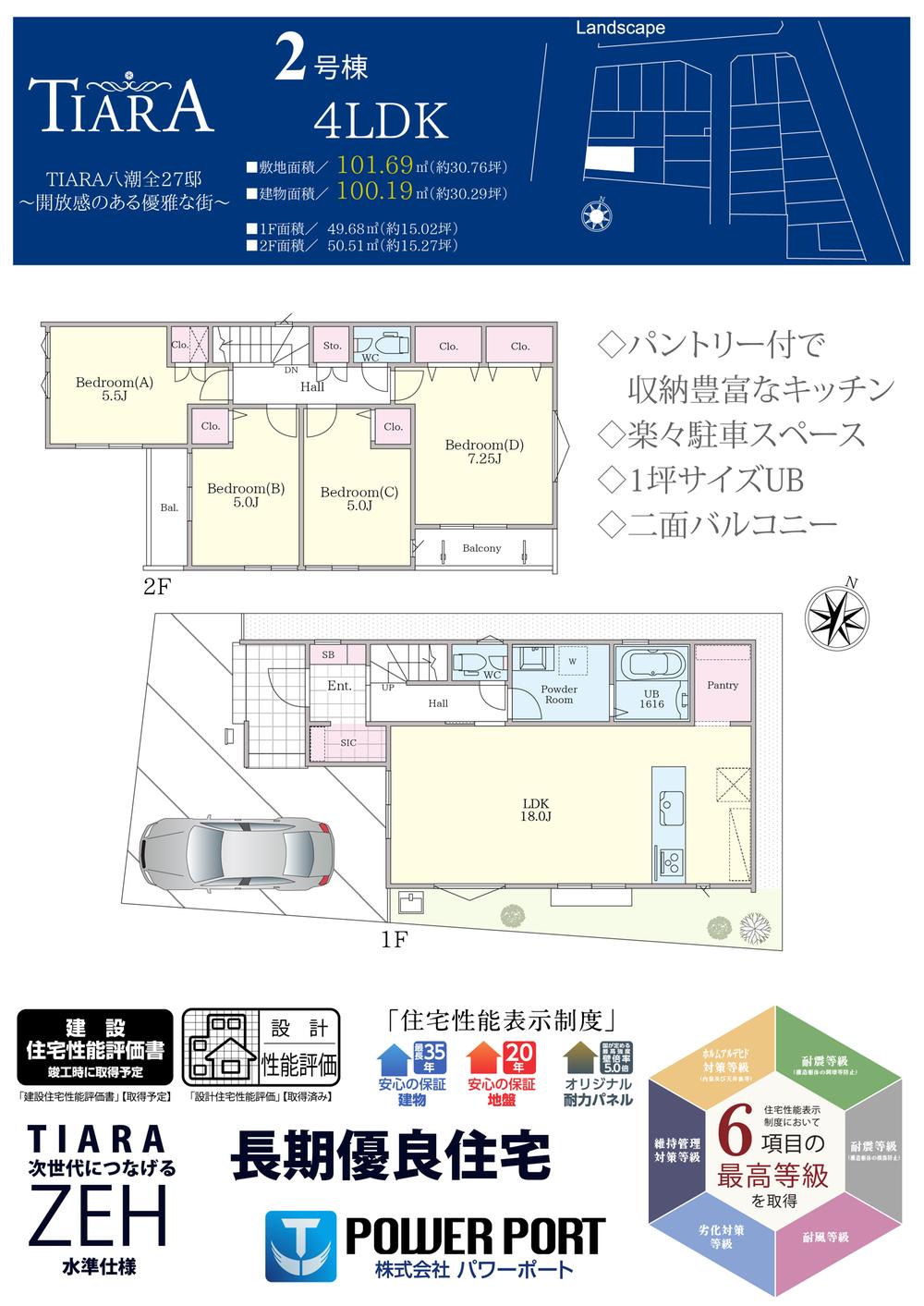 | 設備 | 長期優良住宅認定通知書 / 設計住宅性能評価書 / 建設住宅性能評価書(新築時) / フラット35・S適合証明書 / フラット35Sに対応 / 地盤調査済 / 年内引渡可 / 駐車2台可 / 2沿線以上利用可 / スーパー 徒歩10分以内 / 市街地が近い / システムキッチン / 浴室乾燥機 / 陽当り良好 / 全居室収納 / 駅まで平坦 / 閑静な住宅地 / LDK15畳以上 / 総合病院 徒歩10分以内 / 前道6m以上 / 角地 / 整形地 / シャワー付洗面化粧台 / 対面式キッチン / バリアフリー / トイレ2ヶ所 / 浴室1坪以上 / 2階建 / 南面バルコニー / 複層ガラス / 全室南向き / ロフト / 床下収納 / TVモニタ付インターホン / 節水型トイレ / 緑豊かな住宅地 / 都市近郊 / パントリー(食器・食品の収納庫) / ウォークインクローゼット / 全居室6畳以上 / リビング階段 / 全居室複層ガラスか複層サッシ / 都市ガス / シューズインクローク / 全室2面採光 / 小学校 徒歩10分以内 / 平坦地 / 開発分譲地内 / 区画整理地内 / 食器洗乾燥機 / 整備された歩道 / 浄水器 | ||||