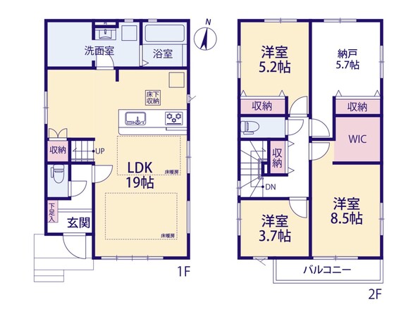 詳細を見る間取り3LDK+S(納戸)+WIC(2.3号棟)+土間収納(2.3号棟)+廊下収納+床下収納建物面積100.28m²~119.15m²土地面積67.63m²~91.69m²築年月-5298万円〜6298万円