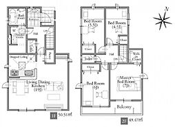 土地面積土地:102.62m2〜109.81m2 建物:85.86m2〜97.20m2
