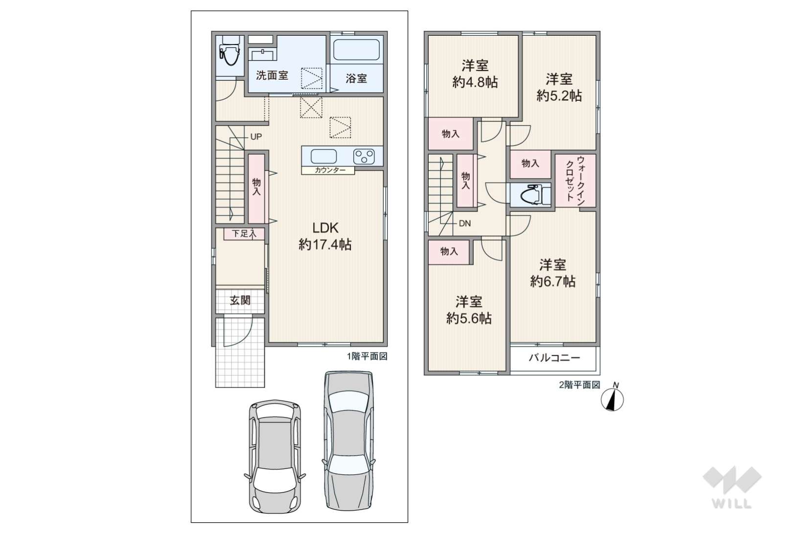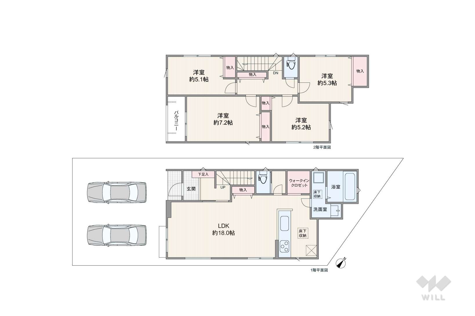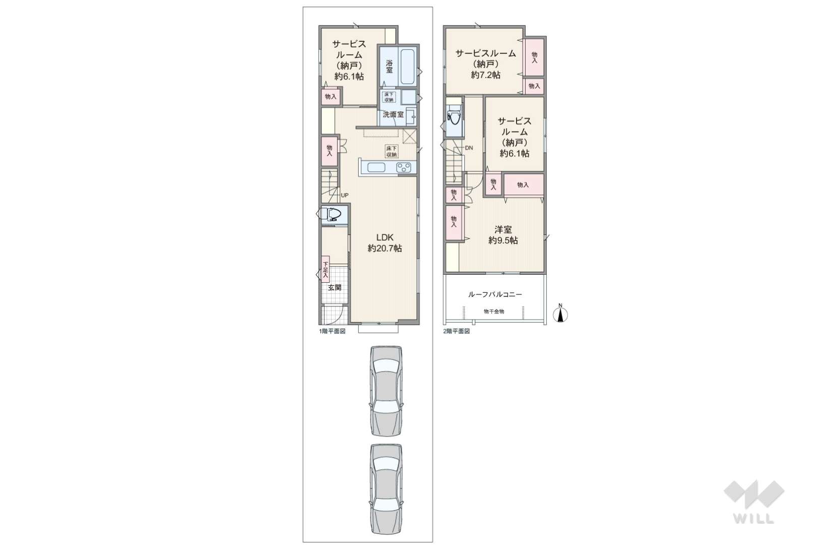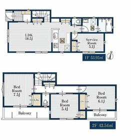 土地面積土地:102.82m2〜104.64m2 建物:92.95m2〜97.60m2