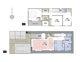 土地面積土地:108.38m2〜110.83m2 建物:96.47m2〜97.91m2