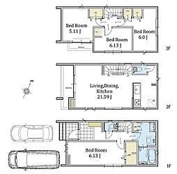 土地面積土地:129.59m2〜156.74m2 建物:95.98m2〜101.65m2