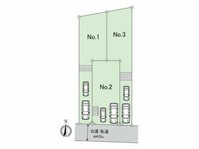 土地面積土地:101.79m2〜102.21m2<私道負担面積57.24m2 私道負担割合1/2> 建物:96.26m2〜97.08m2