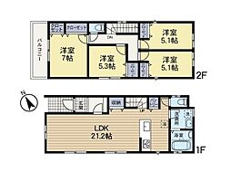 土地面積土地:125.53m2〜134.55m2 建物:100.19m2〜102.31m2