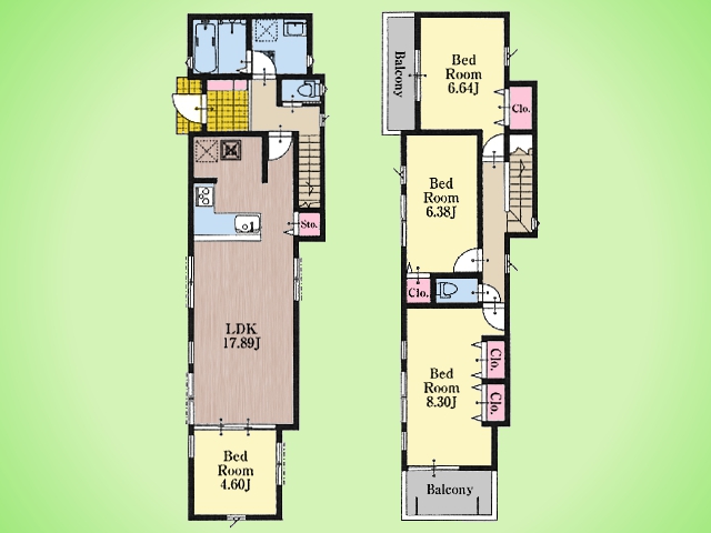 土地面積土地:56.07m2〜72.79m2 建物:93.15m2〜112.61m2