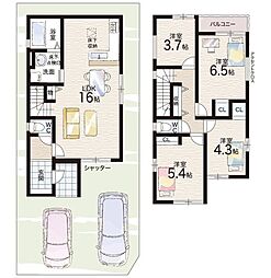 土地面積土地:110.06m2〜125.50m2 建物:98.73m2〜108.88m2