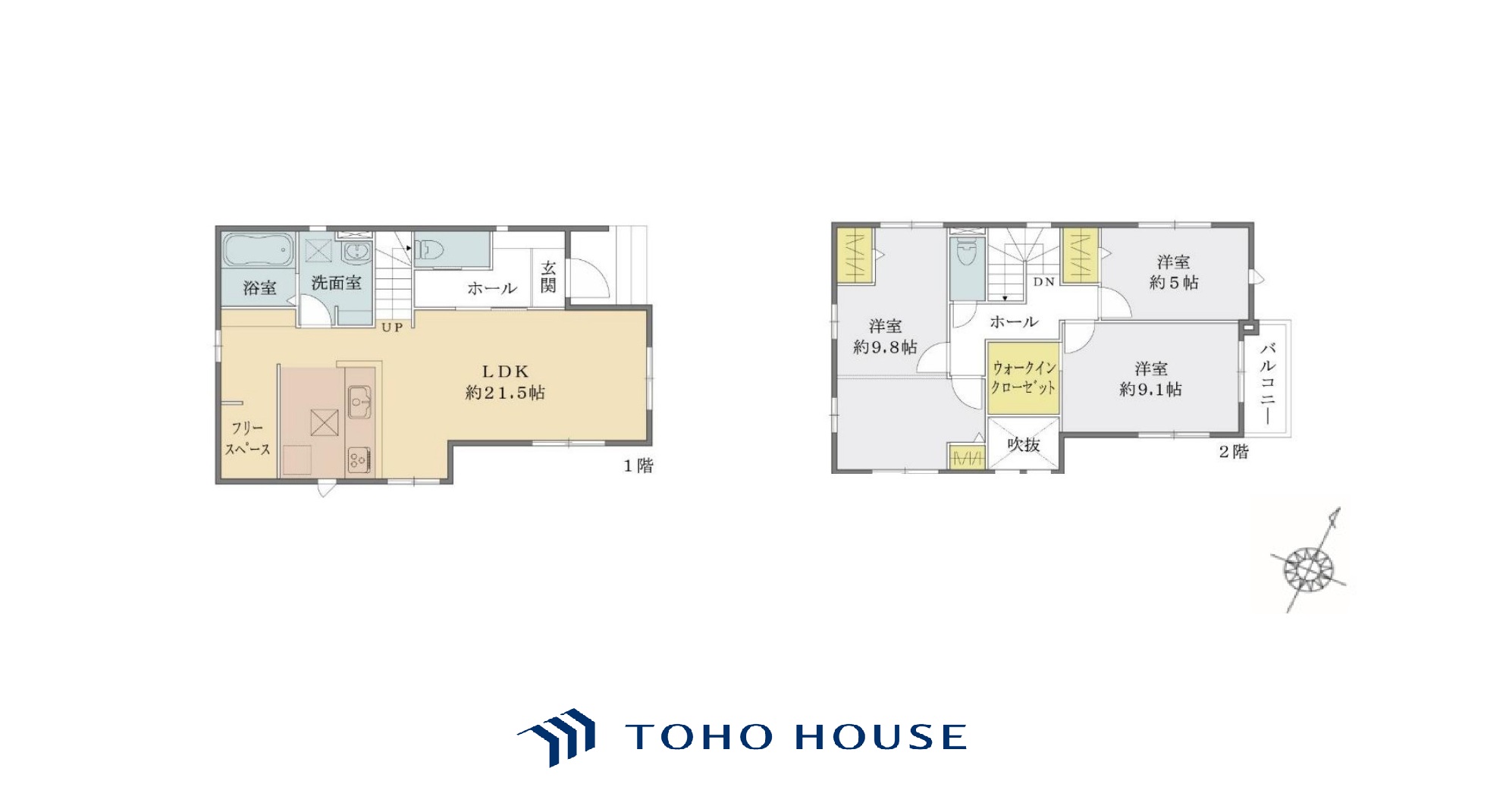 土地面積土地:110.26m2(1号棟)〜116.9m2(2号棟) 建物:97.29m2(1号棟)〜103.5m2(2号棟)
