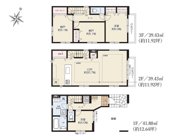 土地面積土地:63.51m2〜66.44m2<私道負担面積131.94m2 私道負担割合1/10> 建物:92.01m2〜113.8m2