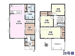 土地面積土地:120.02m2(約36.30坪)〜124.76m2(約37.73坪) 建物:96.87m2(約29.30坪)〜102.04m2(約30.86坪)