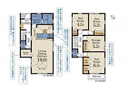 土地面積土地:176.30m2(約53.33坪) 建物:107.02m2(約32.37坪)〜107.23m2(約32.43坪)