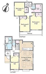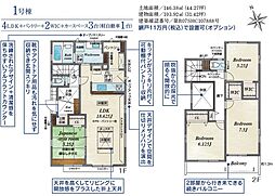 土地面積土地:131.41m2〜131.42m2 建物:104.83m2〜105.72m2