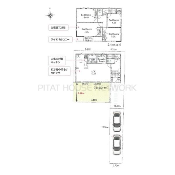 土地面積土地:131.41m2・131.42m2 建物:104.83m2・105.72m2