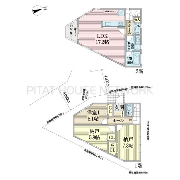 土地面積土地:47.45m2 建物:74.62m2