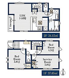 リプラス株式会社 府中支店間取り2LDK+Pantry+小屋裏収納
