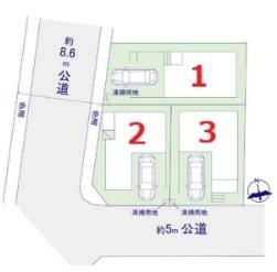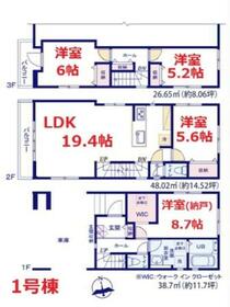 土地面積土地:109.37m2(A号棟)〜138.64m2(D号棟) 建物:102.07m2(B号棟)〜103.52m2(D号棟)